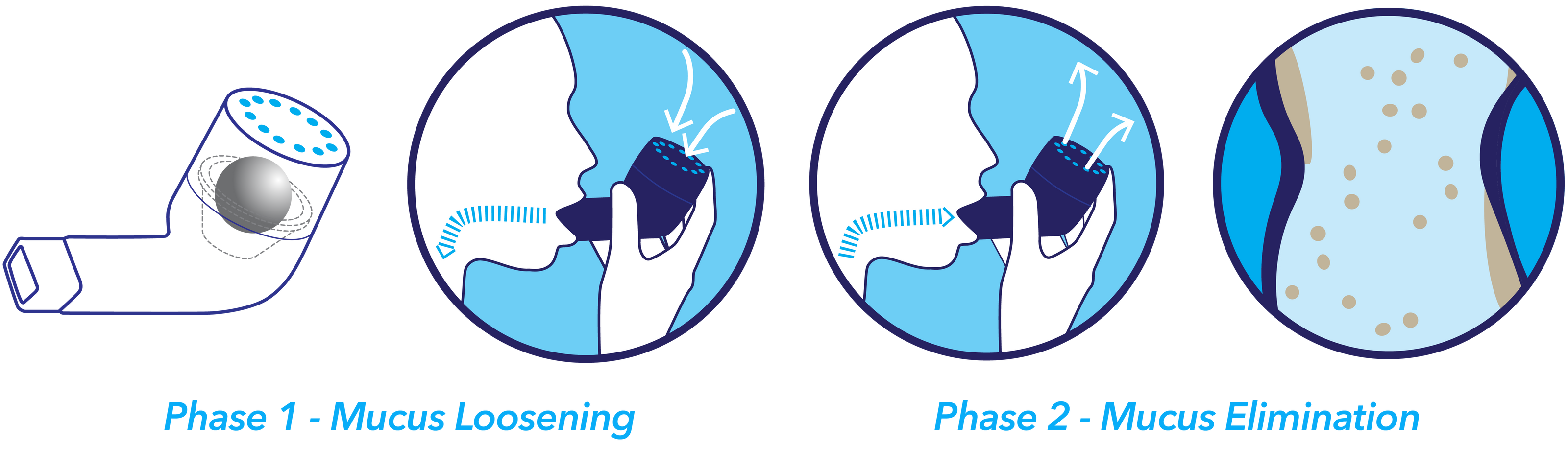 The PPEPE natural lung physio device helps facilitate mucus clearance. It vibrates the airways which loosens mucus and secretions from the airway wall. The intermittent increase in pressure helps keep the airways open during exhalation so that the mucus does not become trapped and can move up the airway. The rapid exhalation that creates the oscillations helps push the mucus up the airway to where it can be coughed out.